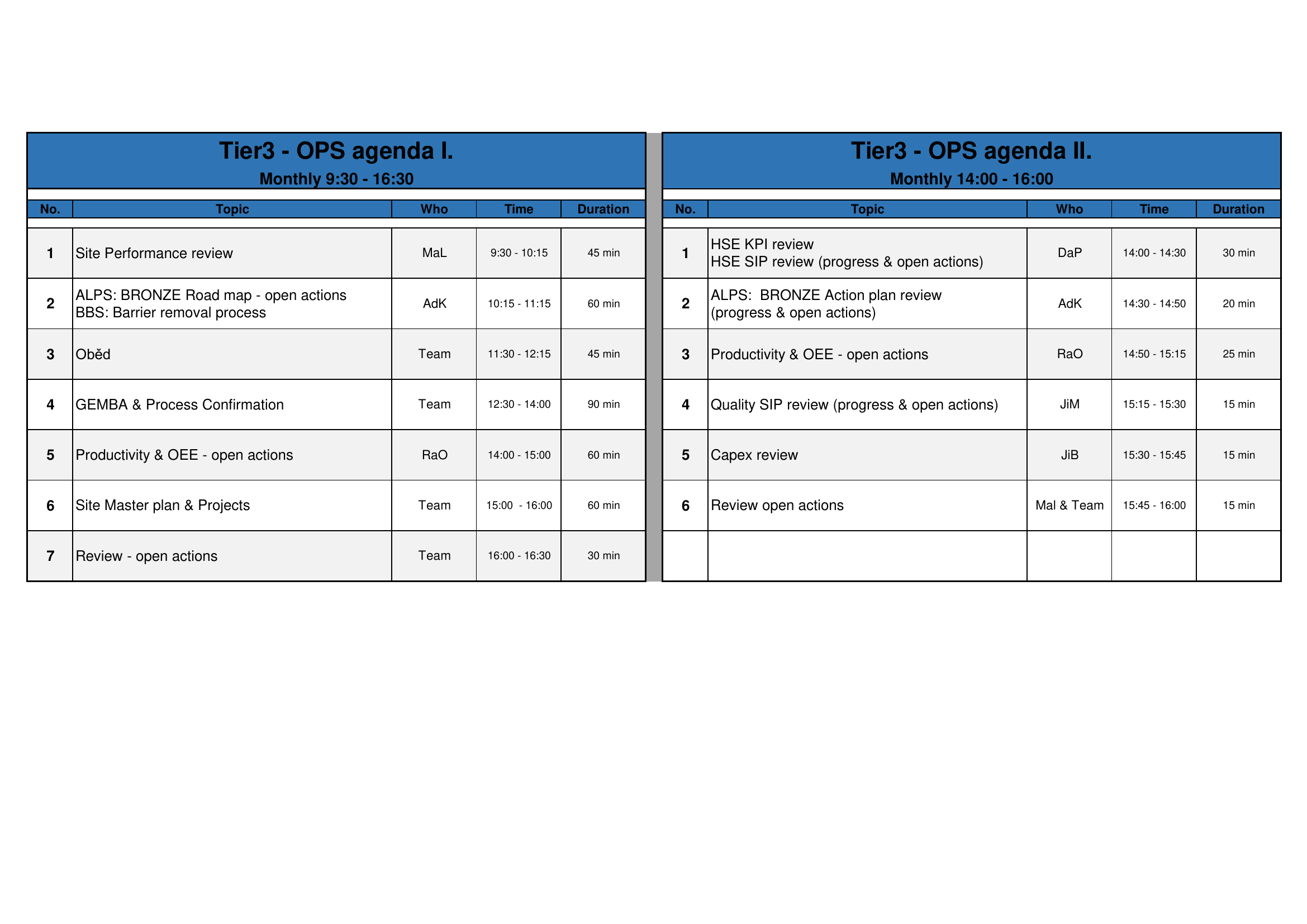 TIER 3 > Agenda